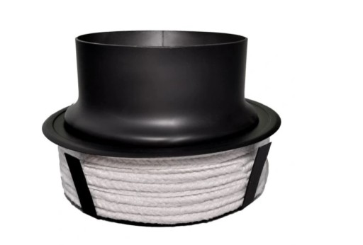 Przejście należy umieścić w kominie, w celu podpięcia do niego rur łączących piec z kominem. Nadaje się do zastosowania z rurami o 150 mm.