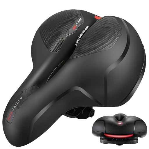 Niezwykle wygodne, piankowe siodełko rowerowe. Doskonałe dla osób odczuwających dyskomfort na standardowych siodełkach w czasie dłuższej jazdy na rowerze. Wyposażone w specjalny, anatomiczny otwór poprawiający wentylację oraz podwójną amortyzację zwiększającą komfort jazdy. Zawieszone na 2 prętach co znacznie zwiększa jego stabilność.