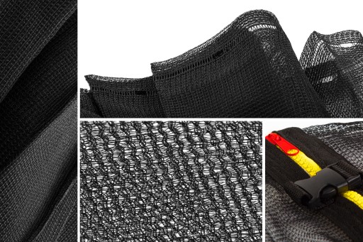 - Ergonomia i bezpieczeństwo, to cechy, które stoją u nas na pierwszym miejscu. Elastyczna siatka zwiększa sprężystość trampoliny, chroni obszar bezpiecznej zabawy i wzmacnia konstrukcję poprzez odciągi przytwierdzone do ramy. Całość jest wykonana z wodoodpornych materiałów odpornych na niekorzystne działanie czynników zewnętrznych oraz promienie UV.
