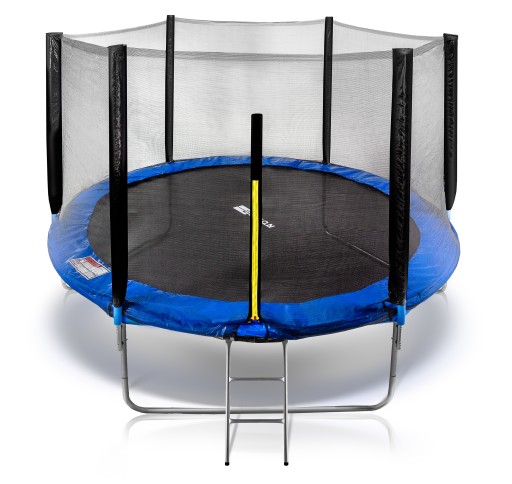 Trampolina 8 ft, to znany model osiągający imponującą średnicę 252 cm. Urządzenie jest bezpieczne, posiada certyfikaty GS, TUV, CE. Wzmocnione nogi, stalowe sprężyny i siatka zabezpieczona zamkiem błyskawicznym na stelażu zapewniają komfort użytkowania i stabilizację konstrukcji.