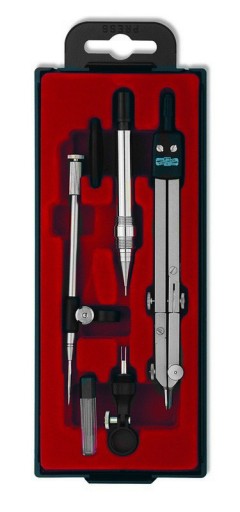 Zestaw zawiera cyrkiel szkolny z plastikowym uchwytem oraz metalowymi ramionami oraz zapasowy grafit.