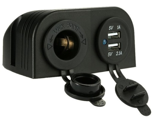 Produkt wyposażony w 2 gniazda USB i 1 gniazdo zapalniczki.