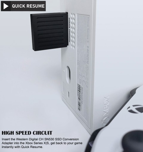 - Włóż adapter konwersji SSD Western Digital CH SN530 do konsoli Xbox Series X|S, aby natychmiast wrócić do gry dzięki funkcji szybkiego wznawiania