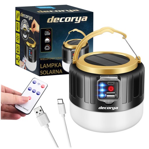 🏕️ Turystyczna lampka LED z powerbankiem, pilotem i panelem solarnym marki Decorya