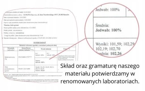 W Almanii wierzymy, że prawdziwy jedwab to gwarancja jakości i trwałości, dlatego próbki naszych materiałów poddajemy profesjonalnym badaniom laboratoryjnym.