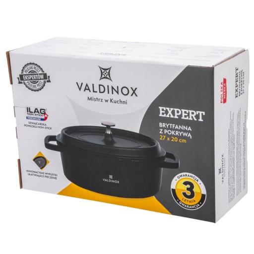 Valdinox to polska marka, o długoletniej tradycji. Znana na rynku krajowym, ale i zagranicznym. Marka charakteryzuje się najwyższej jakości materiałami, dzięki czemu posłuży na długie lata. Znana wśród profesjonalistów, ale i również wszelkich miłośników kuchni i gotowania.
