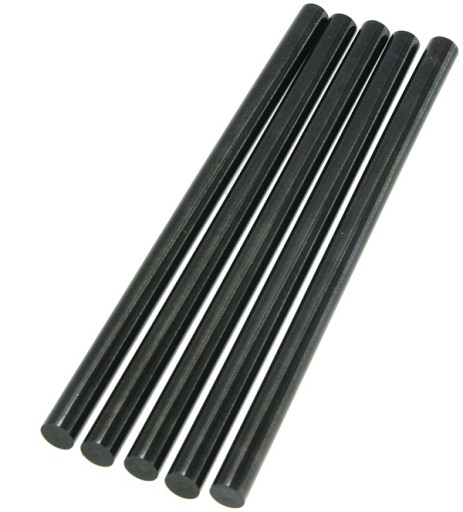 Uniwersalny klej termotopliwy w kolorze czarnym o średnicy 11mm i długości 200mm.