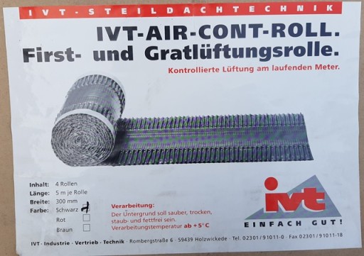 Taśma kalenicowa Air - Controll 300mm x 5mb firmy IVT kolor czarny