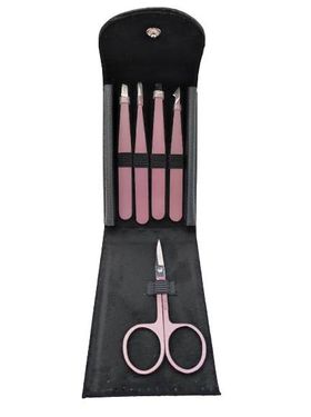 Набор пинцетов и ножниц в фиолетовом футляре 4+1.