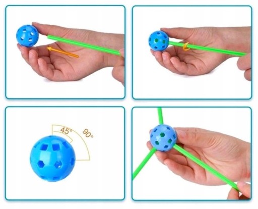 Budowa ze słomek jest bardzo prosta,wystarczy połączyć podłużną rurkę z okrągłym łącznikiem i tworzyć dowolne konstrukcje. łączniki pozwalają na połączenia słomek pod różnymi kątami 45,90 i 180 stopni.