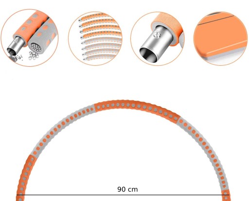 Wnętrze obręczy możesz uzupełnić o dodatkowe obciążenie, umieszczają wewnątrz konstrukcji metalowe kulki, piasek lub inne sypkie i drobne elementy, które zapewnią Ci zwiększenie ciężaru hula hop.