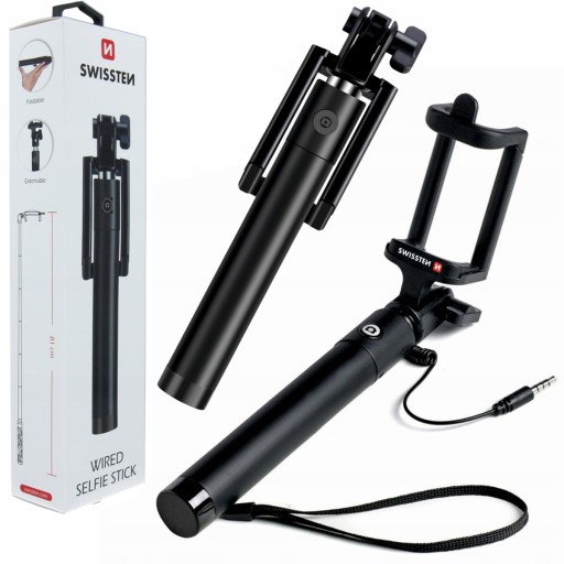 - Teleskopowy selfie stick Swissten z możliwością przedłużenia do 81 cm