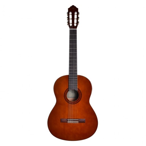 Zestaw gitarowy dla początkujacych gitarzystów, składający się z pokrowca, tunera YTC5 i gitary C40II z korpusem o wymiarze 4/4, której płyta górna wykonana została z laminowanego świerku, boki i tył z laminowanego Meranti, gryf z drewna Nato, podstrunnica z palisandru. Menzura gitary 650 mm, szerokość siodełka 52 mm. Kolor naturalny, wykończenie lakierowane.