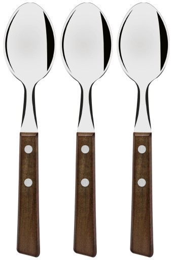3-częściowy zestaw łyżek stołowych Tramontina Tradicional z miseczkami ze stali nierdzewnej i uchwytami z naturalnego drewna jest idealny do wykorzystania podczas gorących posiłków, takich jak pyszna zupa. Elementy wykonane są z miseczkami ze stali nierdzewnej i zapewniają większą wytrzymałość i trwałość. Łyżki mają uchwyty z naturalnego drewna z aluminiowymi nitami, które wnoszą urok i elegancję, na którą zasługuje Twój obiad lub kolacja!