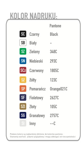 - 20 sztuk z dowolnym znakowaniem, np. logo lub napis, nazwa firmy itp.