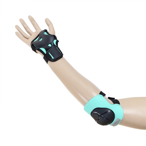 Dodatkowo ochraniacze na łokcie i kolana posiadają elastyczne opaski, które utrzymują ochraniacz w odpowiednim miejscu nie krępując przy tym ruchów.