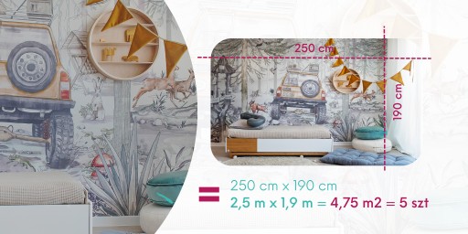 Do wymiaru ściany dodaj zapas montażowy 5-10 cm do szerokości i wysokości tapety. Pamiętaj, nie ma możliwości dosztukowania tapety do wydrukowanego wcześniej zamówienia.