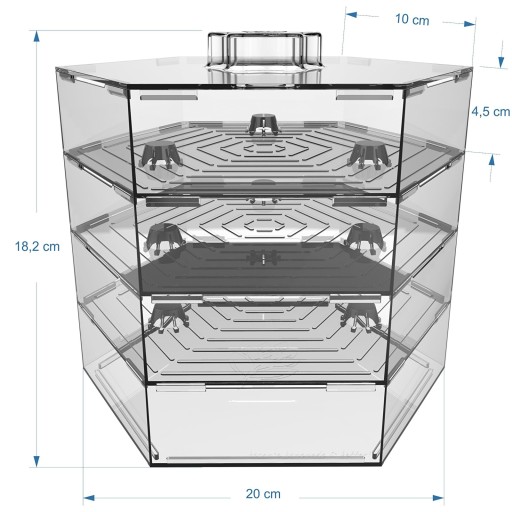 - Uniwersalność – dzięki naszej kiełkownicy możesz w tym samym czasie wyhodować różne odmiany kiełków bez zajmowania dodatkowej powierzchni! Dzięki przezroczystemu materiałowi model dobrze zaprezentuje się w każdej kuchni oraz zapewni duży dostęp światła.