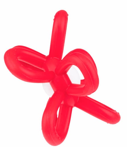 Praktyczne wypustki, zdobiące pętelki, pozwolą korzystać z nich także w formie gryzaka.
