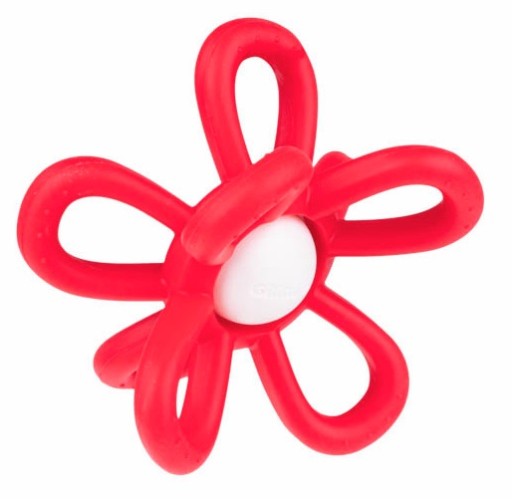 Silikonowa GRZECHOTKA GRYZAK - uspokajający KWIATEK z wypustkami masującymi dziąsła.