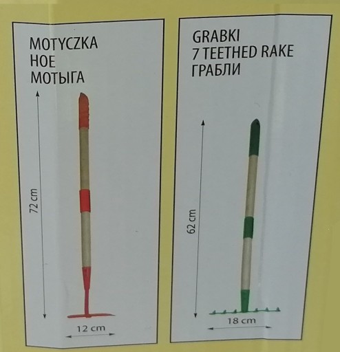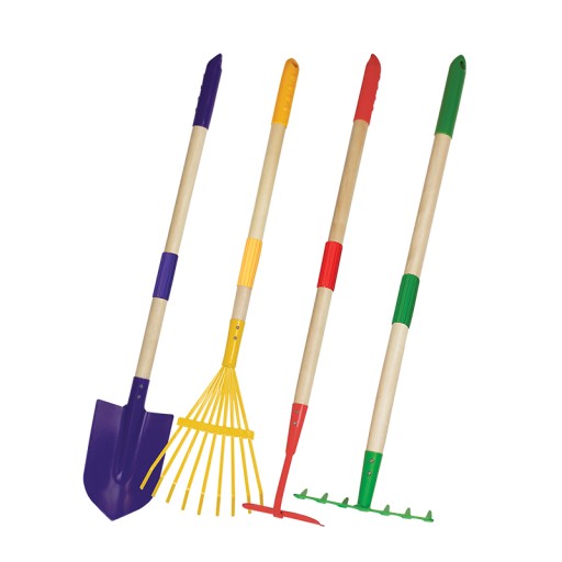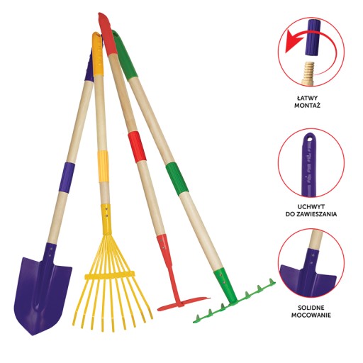 Zestaw narzędzi dla dzieci 4 elementy mały ogrodnik SZPADELEK / MIOTŁOGRABIE / GRABKI / MOTYCZKA