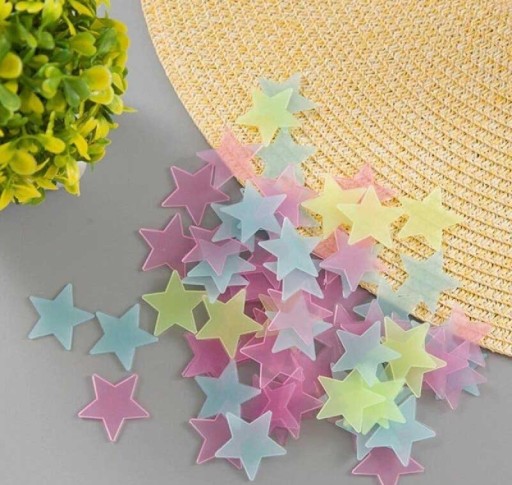 gwiazdki "naładowane" światłem oddają świecenie po zgaszeniu światła.