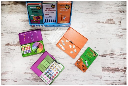 Ciekawa propozycja dla osób, które dużo podróżują. Seria gier magnetycznych w mini formacie, zmieści się do każdej torebki. Gra mało waży, dzięki czemu zawsze możemy ją mieć pod ręką. Sprawdzi się podczas czekania na wizytę u lekarza, w dłuższej podróży samochodem czy samolotem. Metalowe pudełko służy nam za planszę, dzięki czemu gabaryt gry ograniczony jest do minimum.