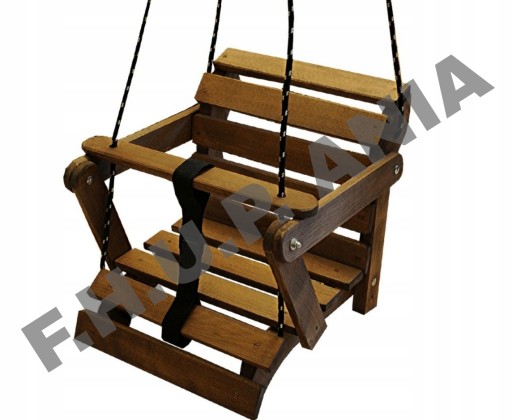 - Huśtawka posiada dwa zabezpieczenia listewkę z przodu oraz pas parciany dla najmłodszych.