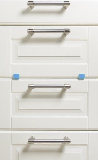 Drukowane dystanse w kolorze jasnym niebieskim, które ułatwią regulację frontów.