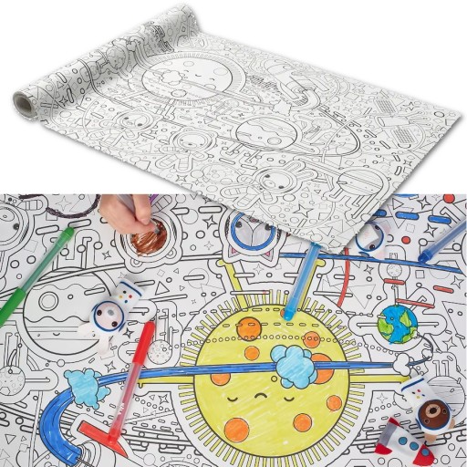 ✔️ Na tej rolce papieru jest wspaniały kosmiczny świat, który tylko czeka na wypełnienie kolorem. Idealny do rozłożenia na stole lub na podłodze, aby cała banda rozbrykanych maluchów była zajęta w deszczowy dzień.