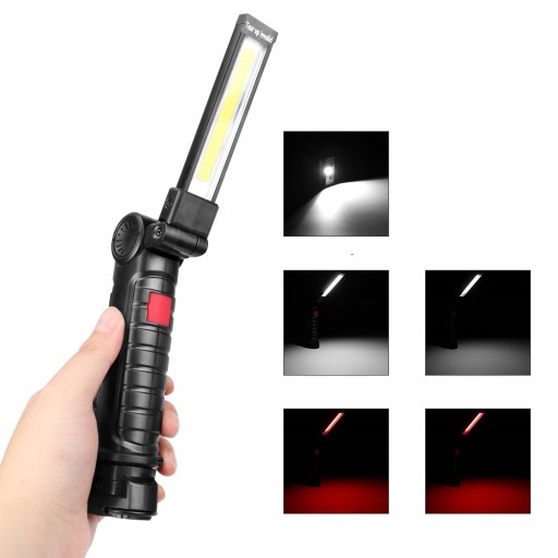 ✔️ 5 trybów pracy (światło COB mocne, światło COB słabe, mini LED, stałe i migające czerwone światło)