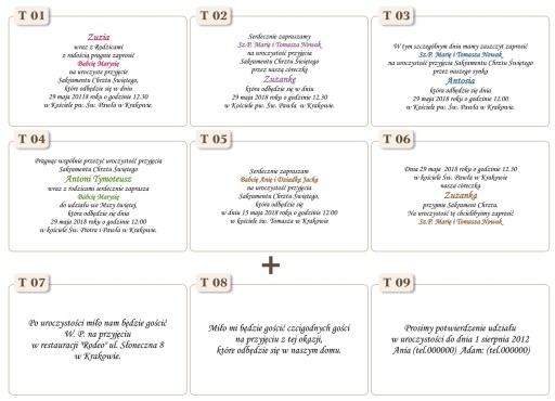 - TEKST do zaproszenia np. T1 /te podane poniżej są tylko przykładowe/: