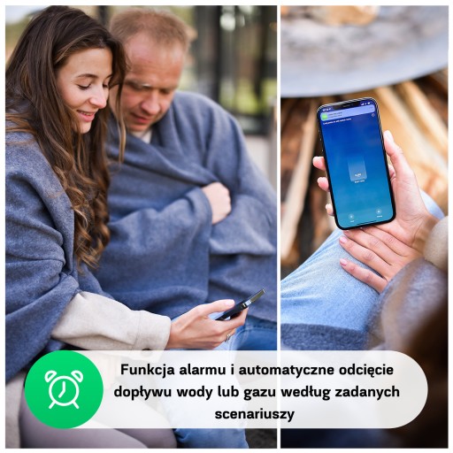 - W połączeniu z czujnikiem zalania , sterownik może automatycznie zamknąć dopływ wody