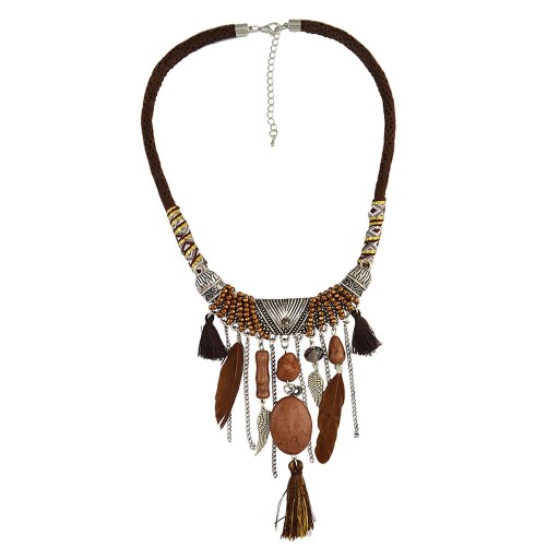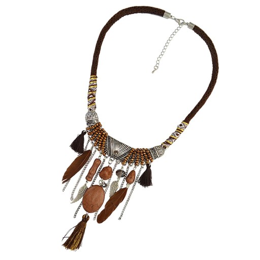 Biżuteria w stylu vintage Turkusowe frędzle Choker Czeski oświadczenie Naszyjnik Brązowy