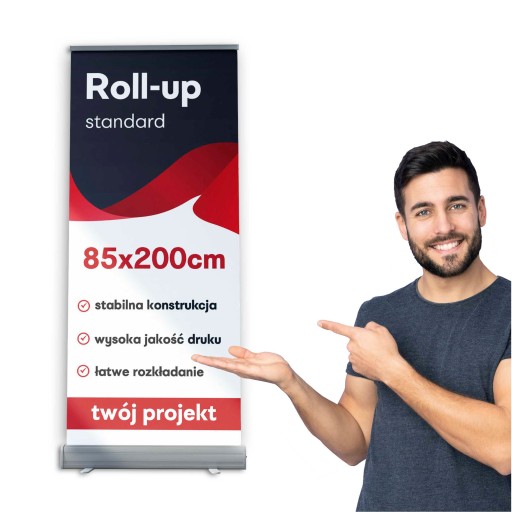 Na tej aukcji kupujesz roll-up o wymiarach 85x200 cm wraz z wydrukiem.