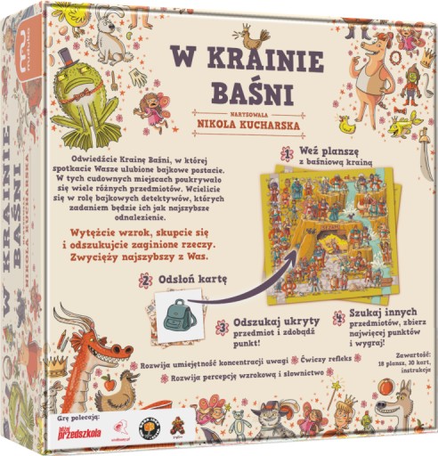 Listy, okulary, drabiny, miotły i inne obiekty codziennego użytku zgubiły się w okolicy zamku Kopciuszka, chatki Królewny Śnieżki, targu Alladyna i wielu innych cudownych miejsc. “W Krainie Baśni” gracze wcielają się w bajkowych detektywów, których zadaniem będzie jak najszybsze odnalezienie tych przedmiotów. Zadanie nie jest łatwe, bo obiektów na planszach jest całe mnóstwo!