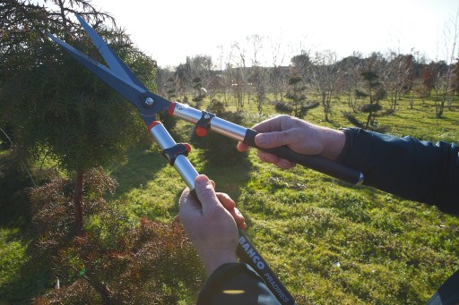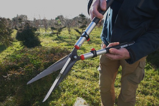 - Lekkie, kompaktowe i dobrze wyważone nożyce do żywopłotu z aluminiowymi rękojeściami o długości 35 cm i ostrym ostrzem o długości 180 mm