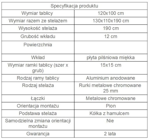 Tablica może mieć układ pionowy (tak jak w tej ofercie) lub poziomy
