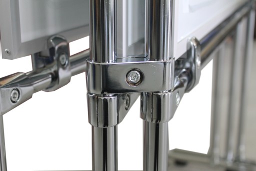 Tablica jest zamontowana w stelażu metalowym chromowanym, rurki o średnicy 25 mm. Chromowanie zapobiega korozji i pozwala na wieloletnie użytkowanie naszych tablic