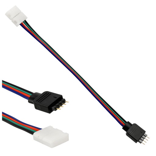 ✅ Złączka do taśmy LED RGB spinka-kabel-gniazdo to akcesorium służące do połączenia dwóch odcinków taśmy LED RGB.