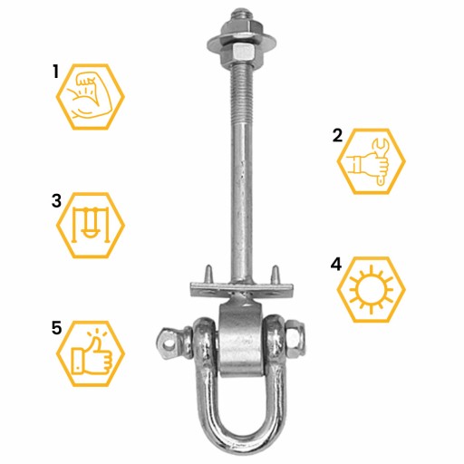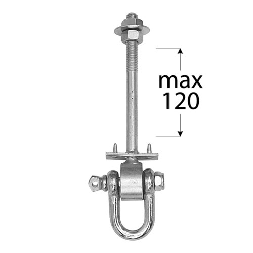 КРЮК С ШЕЙКЕЛЕМ И ШПИЛЬКАМИ ДЛЯ КРЕПЛЕНИЯ КАЧЕШЕЙ MHD120 ОЦИНКОВАННЫЙ DOMAX