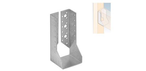 Zagięte do wewnątrz elementy wieszaków umożliwiają zamocowanie belki w przypadku ograniczonej ilości miejsca, szczególnie na wąskich słupach. Ponadto, częściowe zakrycie wieszaka pomiędzy łączonymi elementami daje lepszy efekt wizualny. Dodatkowe, duże średnice otworów sprawiają, że można je stosować również przy mocowaniu belek do betonowej ściany.