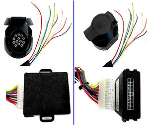 Jest to adapter pozwalający połączyć przyczepę posiadającą wejście 7-pinowe (typ Polski) do samochodu który posiada gniazdo z 13 pinami (typ Europejski).