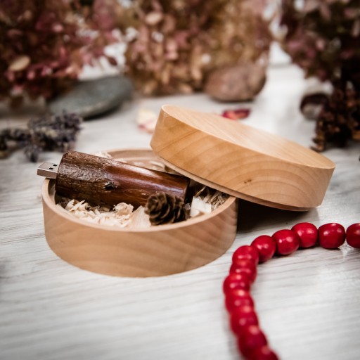 MATERIAŁEM JEST NATURALNE DREWNO, DLATEGO KOLOR I WZÓR PUDEŁKA ORAZ PENDRIVE MOŻE SIĘ RÓŻNIĆ OD PRZEDSTAWIONEGO NA ZDJĘCIU!