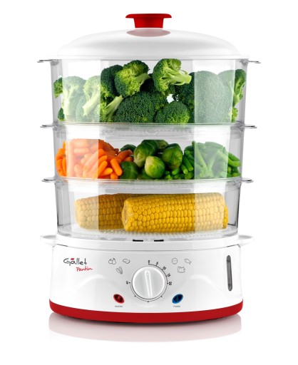 Poznaj wygodne i funkcjonalne urządzenie do zdrowego gotowania na parze - parowar marki GALLET. Służy do łagodnego gotowania na parze, pozwalającego na zachowanie witamin w potrawach. Idealnie nada się do gotowania dla osób, które chcą zadbać o zdrowe odżywianie, stracić kilka kilogramów, oraz dla osób, których dieta wymaga gotowanych potraw. Parowar GALLET o mocy 900 W, jest wyjątkowym i niezawodnym pomocnikiem do zdrowego i szybkiego gotowania. Dzięki niemu jedzenie nie traci swojego naturalnego smaku i witamin. Jego nowoczesny i elegancki design sprawi, że będzie ozdobą w Twojej kuchni. Objętość 3 przezroczystych pojemników do gotowania to 8.5 litra.