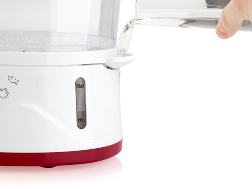 - Funkcje: Automatyczne wyłączanie, Pojemnik do gotowania sypkich produktów, Minutnik, Możliwość mycia pojemników w zmywarce, Możliwość włożenia pojemnika w pojemnik, Wskaźnik poziomu wody, Zewnętrzne uzupełnianie wody