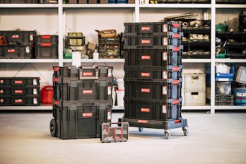 BOX 100 FLEX - Modularny, wytrzymały Box do przenoszenia narzędzi ręcznych, materiałów budowlanych, ale również do magazynowania zróżnicowanych przedmiotów np. w garażu lub na domowym zapaleczu.
