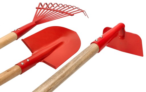 - Zestaw zawiera: grabie, szpadel i motykę.