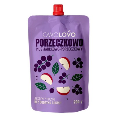 5x mus PORZECZKOWO (przecier z jabłek 92%, przecier z czarnej porzeczki 8%).