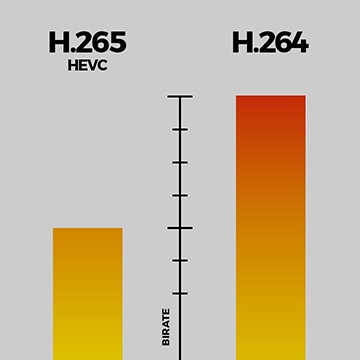 Kodowanie H.265 w stosunku do kodowania H.264 wyróżnia się lepszym transferem danych (wideo bitrate) i mniejszym zapisem plików czyli jego lepszą kompresacją. Dla potrzeb monitoringu to oszczędność wykorzystania pasma sieciowego i przestrzeni dyskowej. H.265 pozwala zaoszczędzić 50% powierzchni dyskowej bez utraty jakości nagranego obrazu. Używając kodowania H.265 w porównaniu do H.264 na dysku o takiej samej pojemności możemy zapisać dwa razy więcej wideo nagrań.